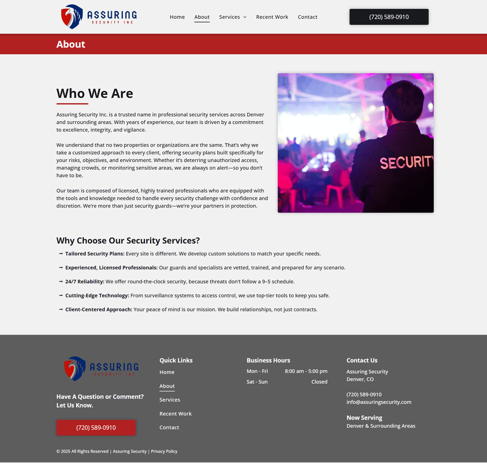 Assuring Security – A modern, responsive, and fast WordPress business portfolio powered by ACF. SEO-friendly and fully customizable to showcase your security solutions with clarity and professionalism.
