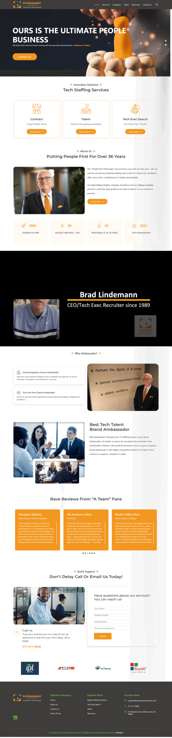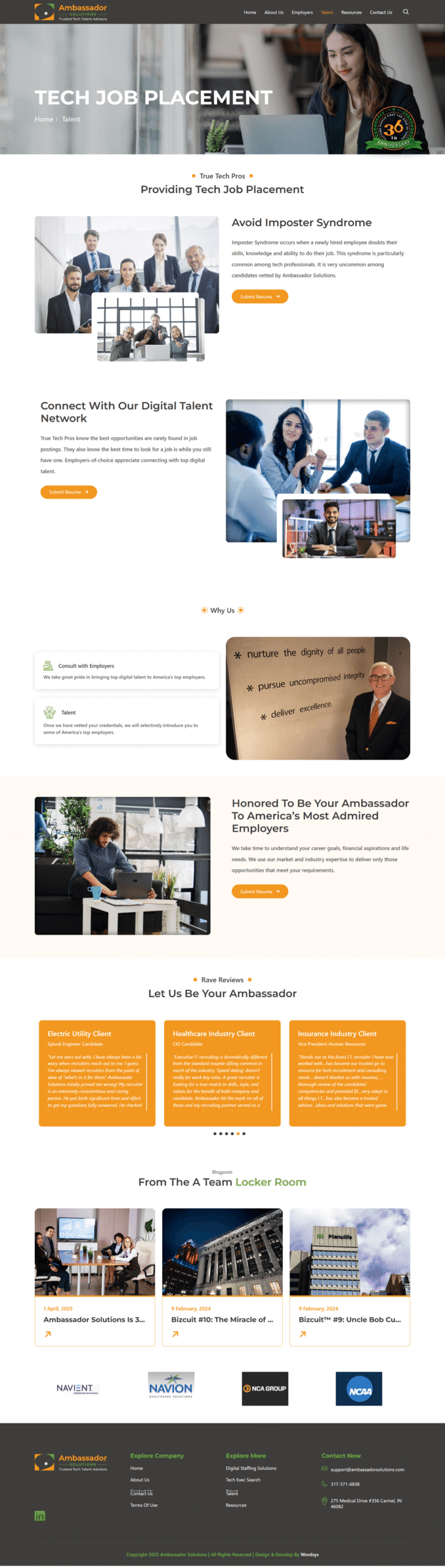 Ambassador Solutions is a modern, responsive, and fast WordPress business portfolio built with ACF and Smart Slider 3—SEO-friendly to highlight innovative IT solutions with dynamic, user-focused design.