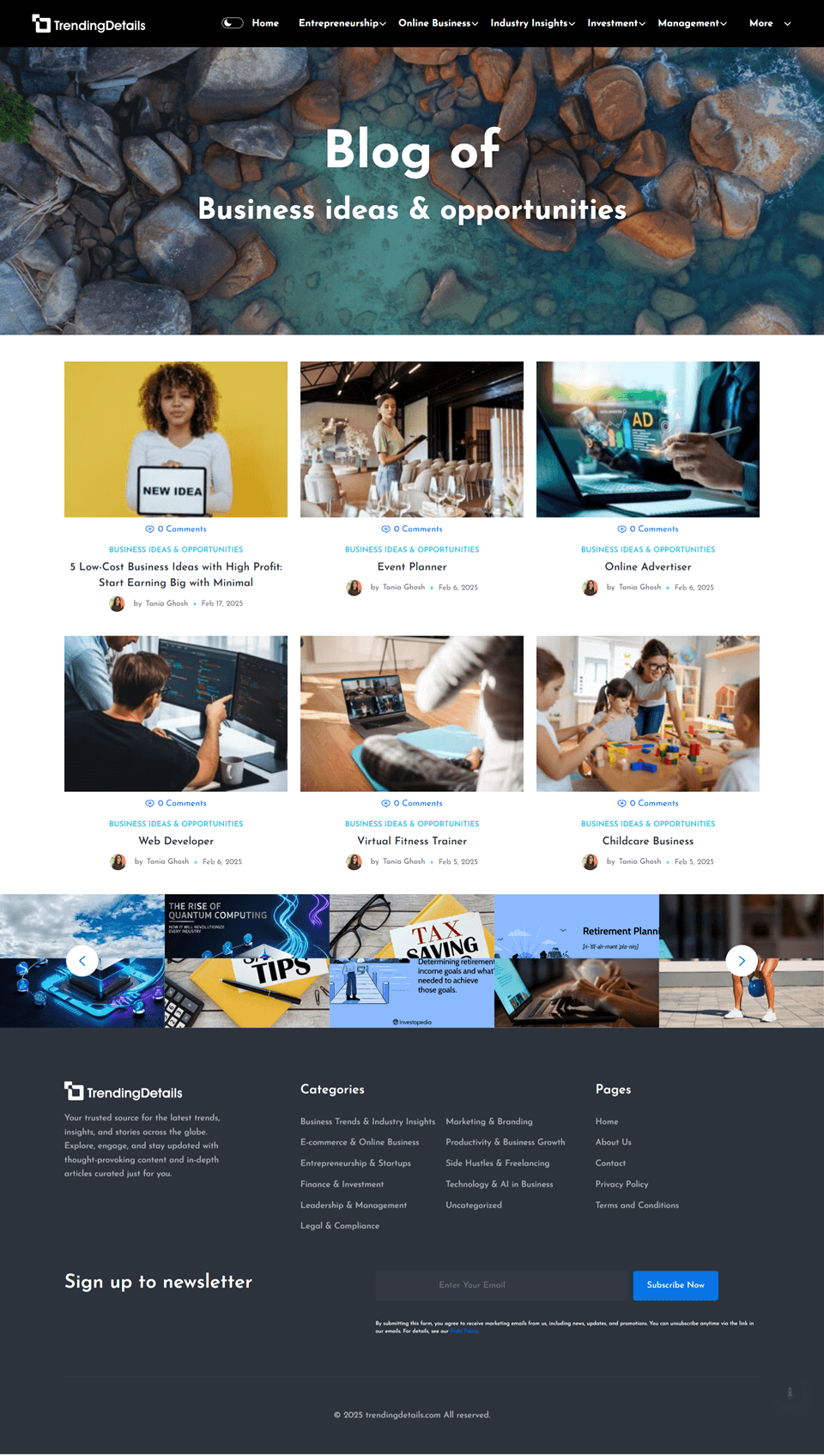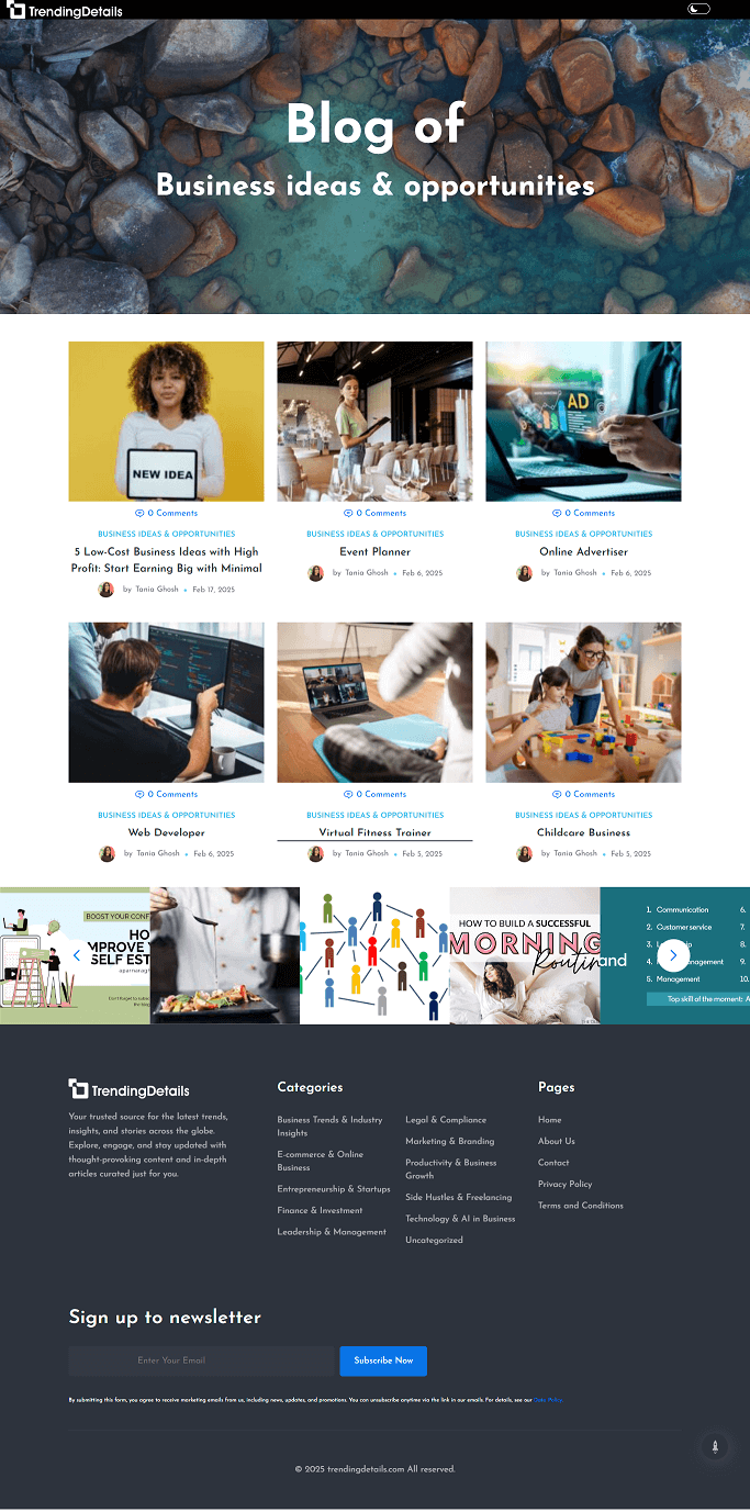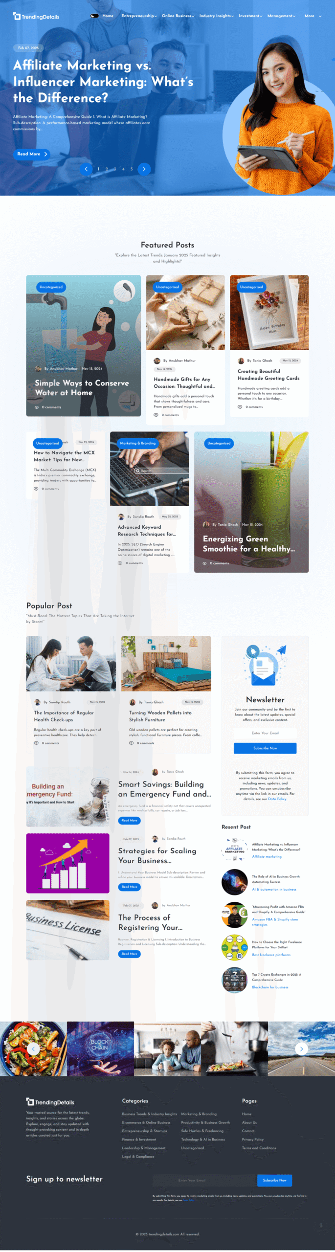 A modern, responsive, and SEO-friendly WordPress site featuring a dynamic blog and business portfolio. Built with Elementor and Smart Slider 3 for fast, engaging performance.