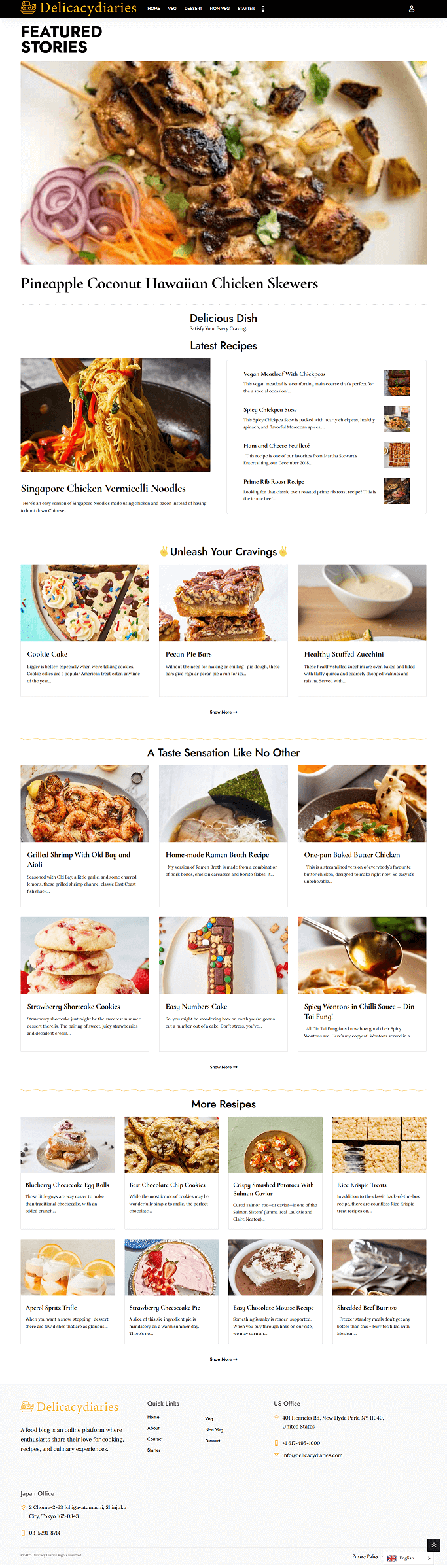 Delicacydiaries is a modern, responsive, fast, and SEO-friendly WordPress site using ACF, Blog, Contact Form 7, custom code, and multilingual support for a seamless global user experience.