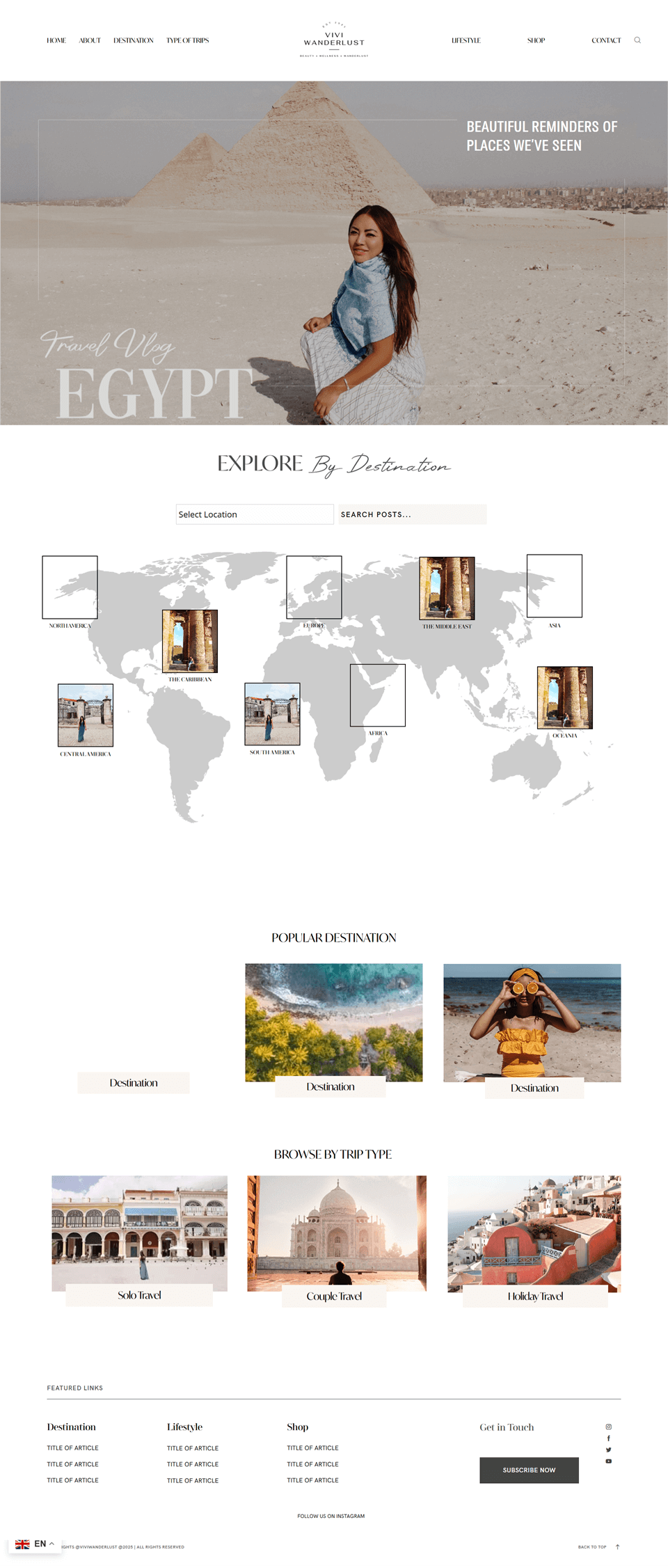 VIVI Wanderlust’s modern, responsive, and SEO-friendly WordPress portfolio showcases travel experiences with fast-loading performance, captivating visuals, and mobile-friendly design for global reach.