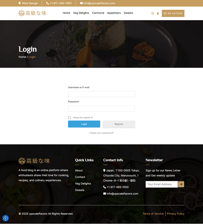 Upscale Flavors is a modern, responsive, fast, and SEO-friendly site featuring ACF, Blog, Contact Form 7, custom code, and secure Login & Registration for a rich, user-focused digital experience.