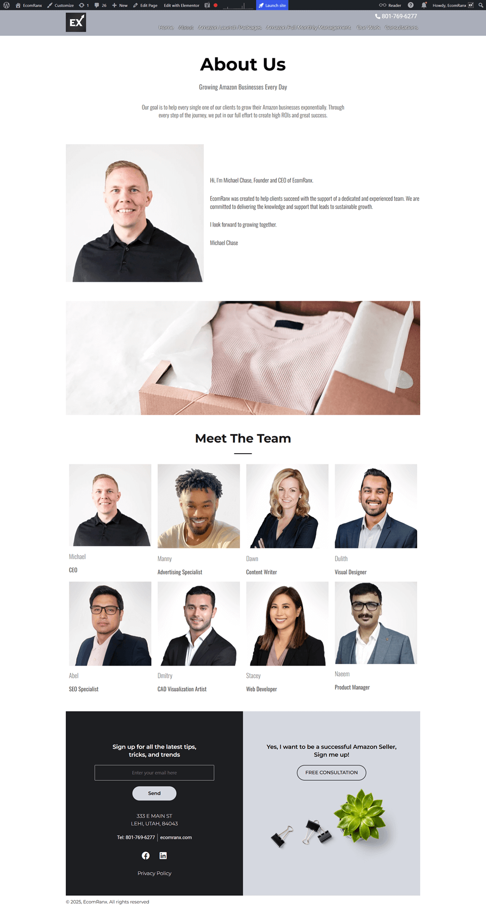 EcomRanx showcases a modern, responsive, and SEO-friendly business portfolio built with Elementor on WordPress. Designed for speed and performance to highlight eCommerce SEO services effectively.