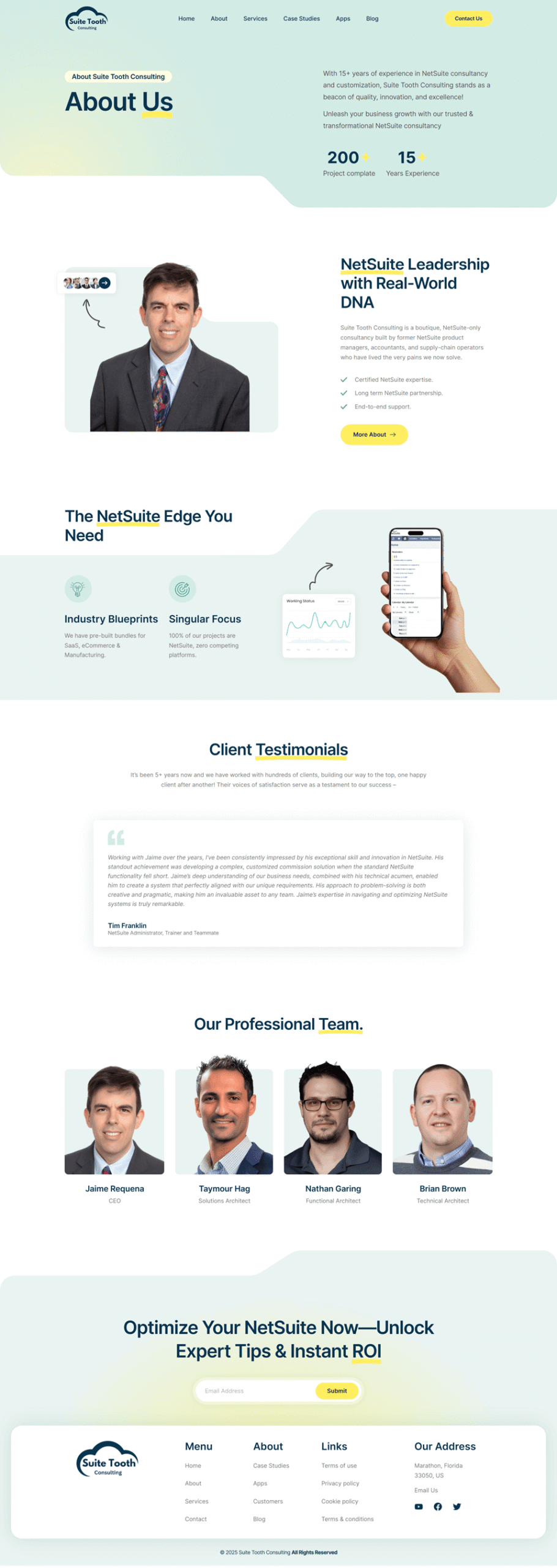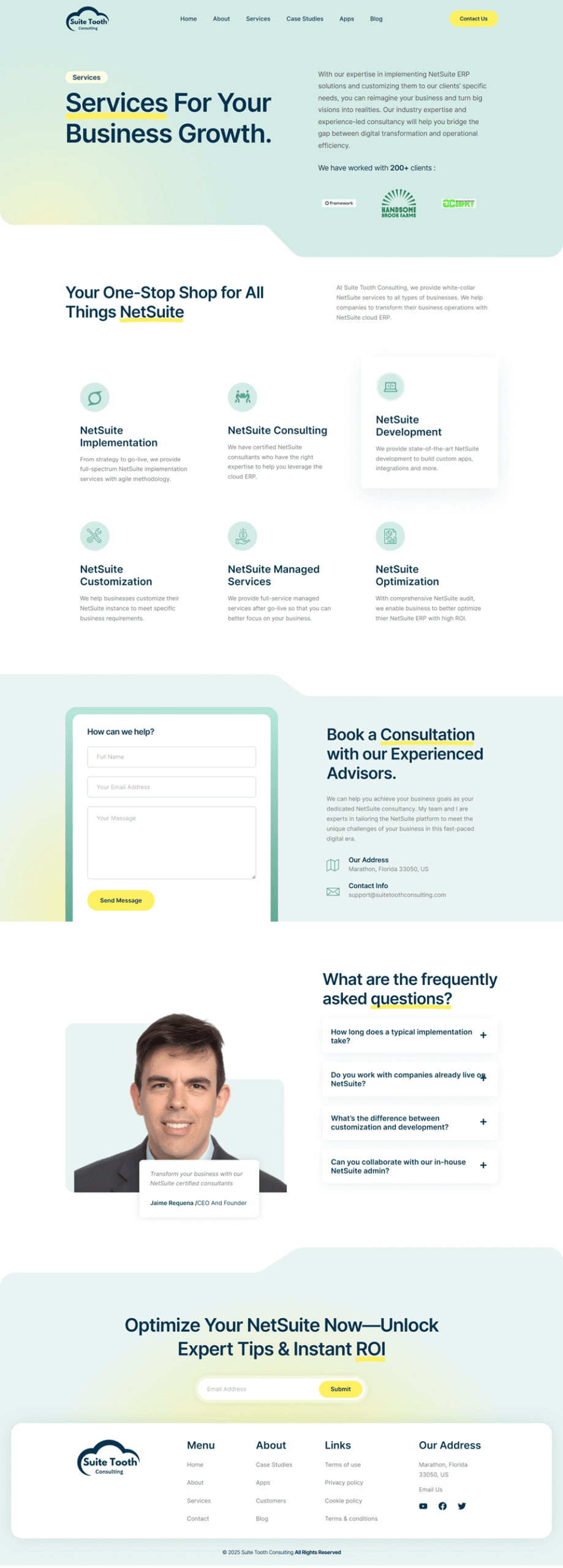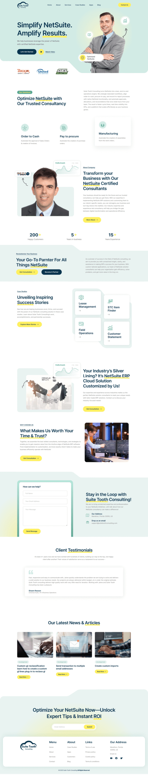 Suite Tooth Consulting's modern, responsive, and fast WordPress site built with Elementor showcases a sleek business portfolio. SEO-friendly design ensures strong online presence and client growth.
