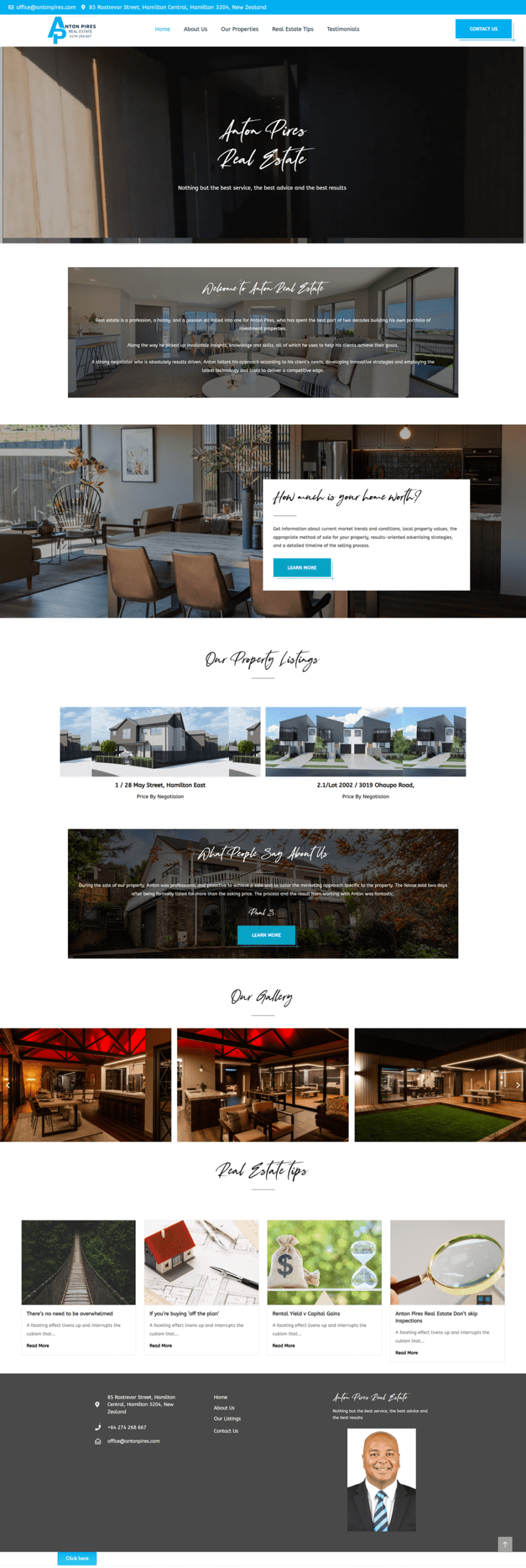 Anton Pires Real Estate – a modern, responsive, and SEO-friendly WordPress website built with Elementor, offering fast performance and a sleek, professional design for showcasing properties.