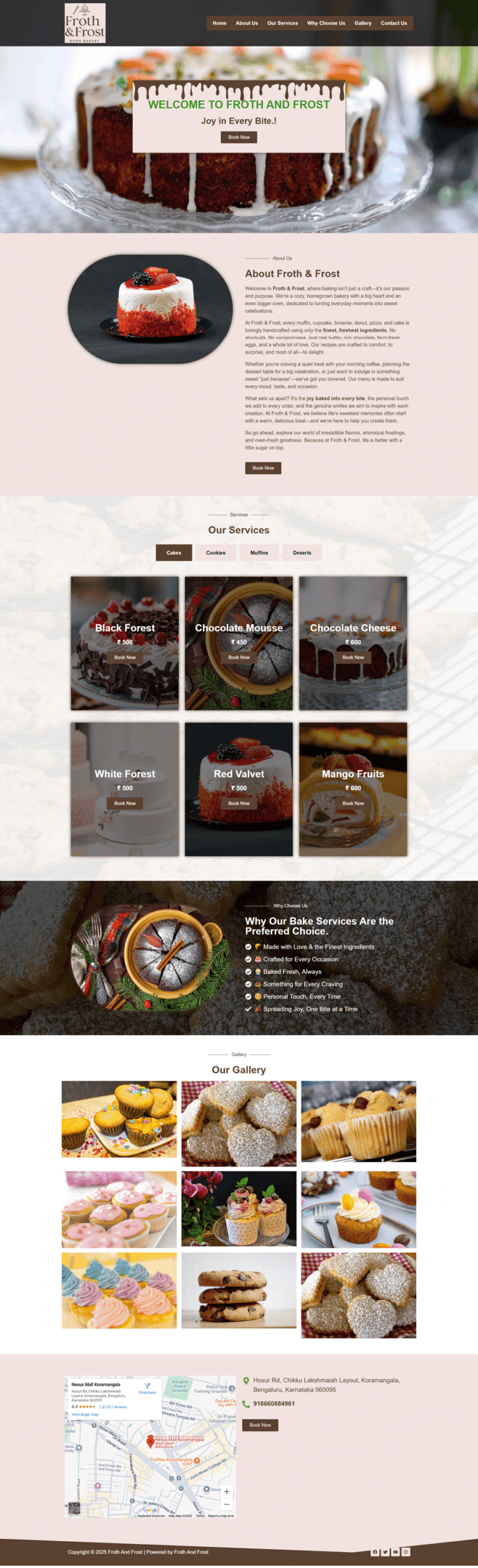 Froth and Frost – A modern, responsive, fast, and SEO-friendly WordPress site built with Elementor, featuring Google Maps for easy location access.