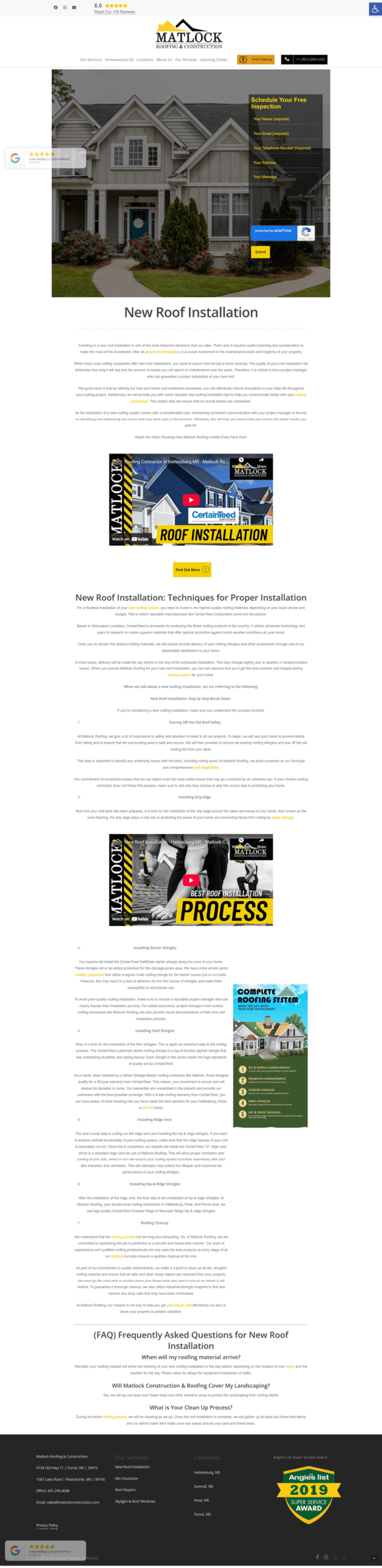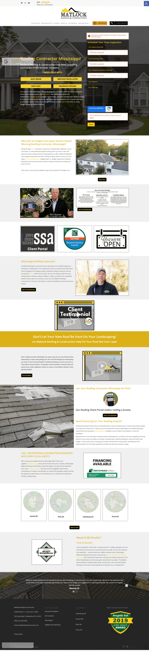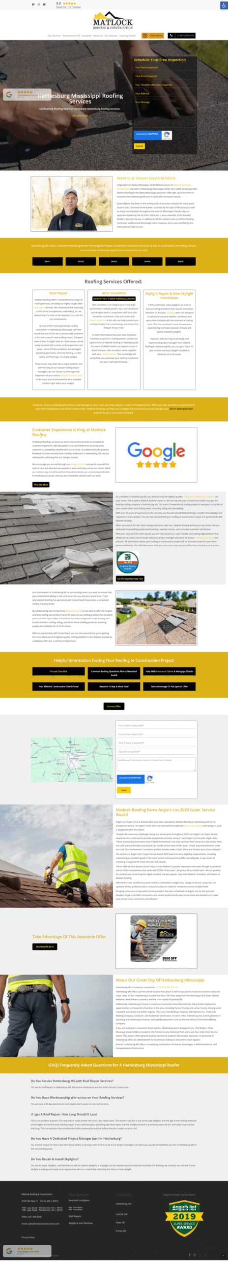 Matlock Roofing & Construction features a modern, responsive, and fast WordPress site built with Elementor and Contact Form 7—fully SEO-friendly to attract leads and ensure a smooth user experience.