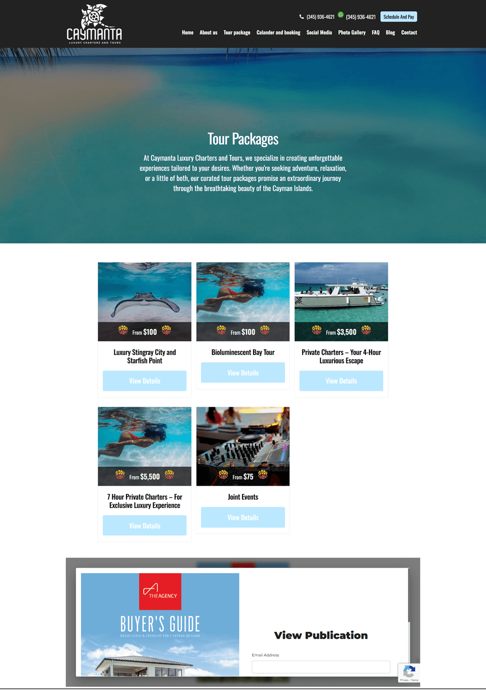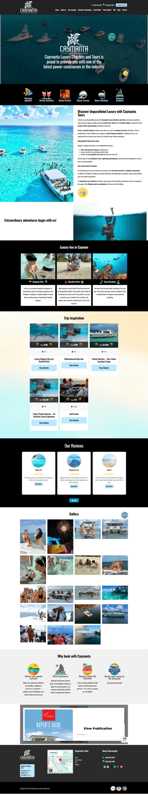 Caymanta Luxury Charters and Tours – a modern, responsive, and SEO-friendly WordPress shop built with Elementor and WooCommerce, featuring fast performance and WhatsApp Chat for easy customer support.
