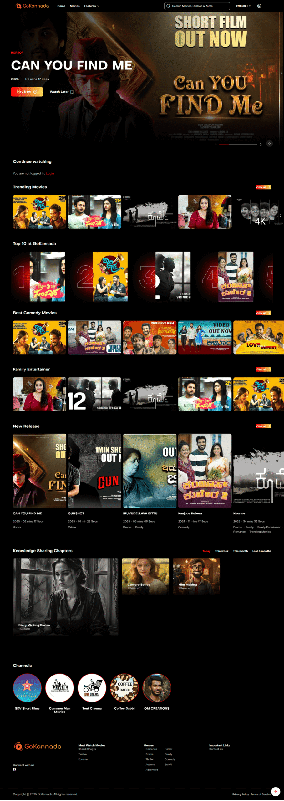 GoKannada – A modern OTT platform website built with WordPress and Elementor, delivering seamless video streaming with a clean and user-friendly design.