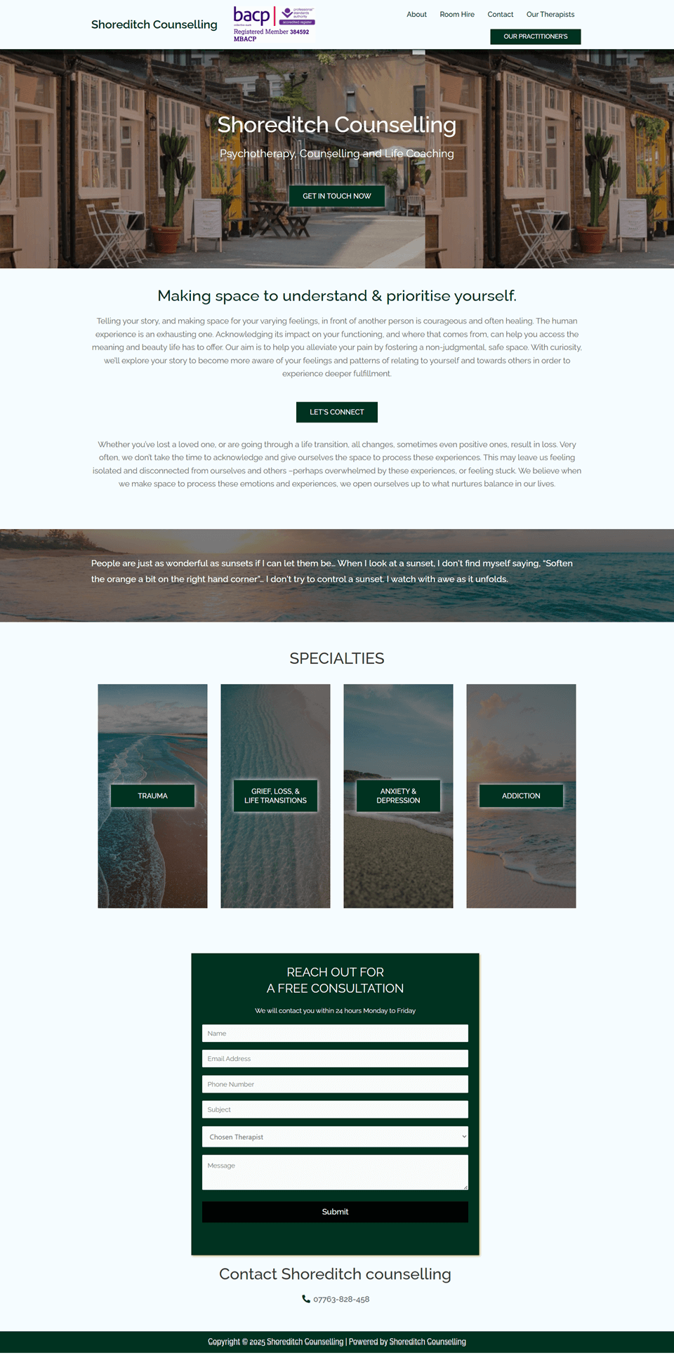 Modern, responsive, and SEO-friendly business portfolio for Shoreditch Counselling, built with Elementor on WordPress. Fast-loading design tailored to highlight services and connect with clients.