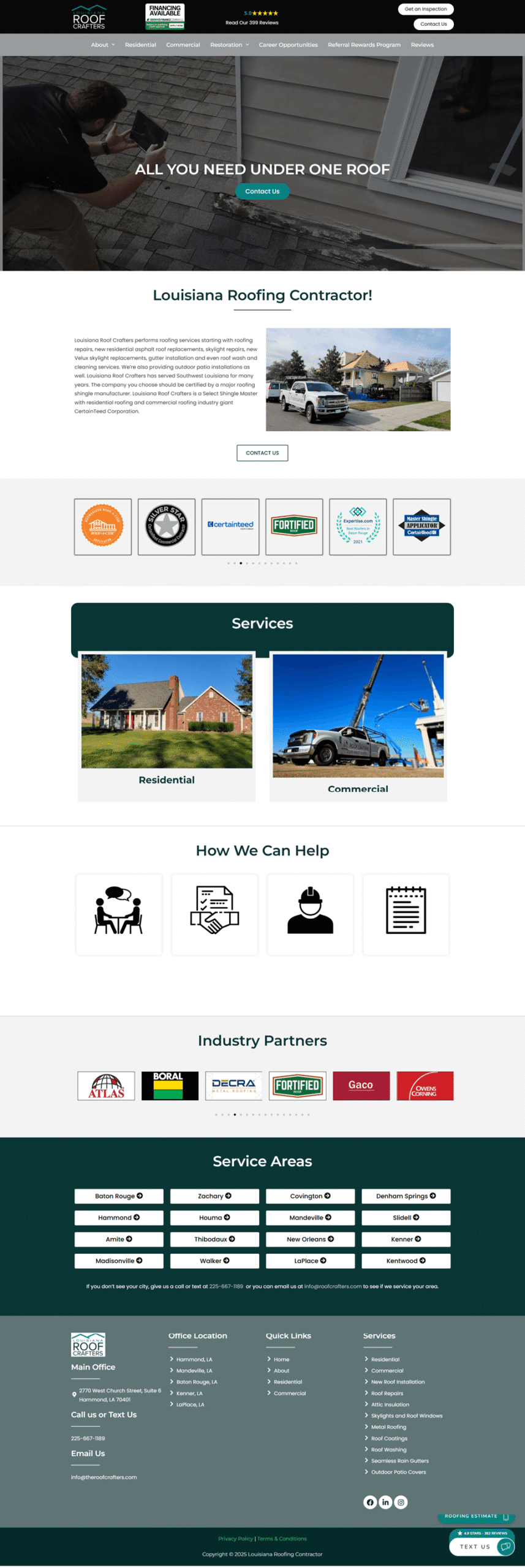 Modern, responsive, and fast WordPress site built with Elementor for a Louisiana roofing contractor. SEO-friendly design to boost local visibility and attract more roofing clients online.