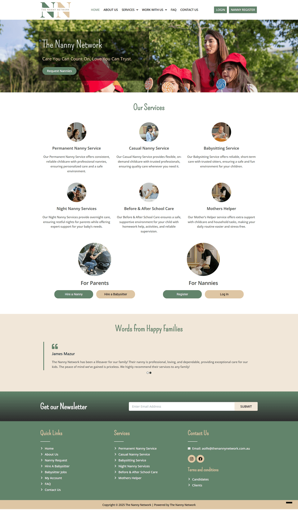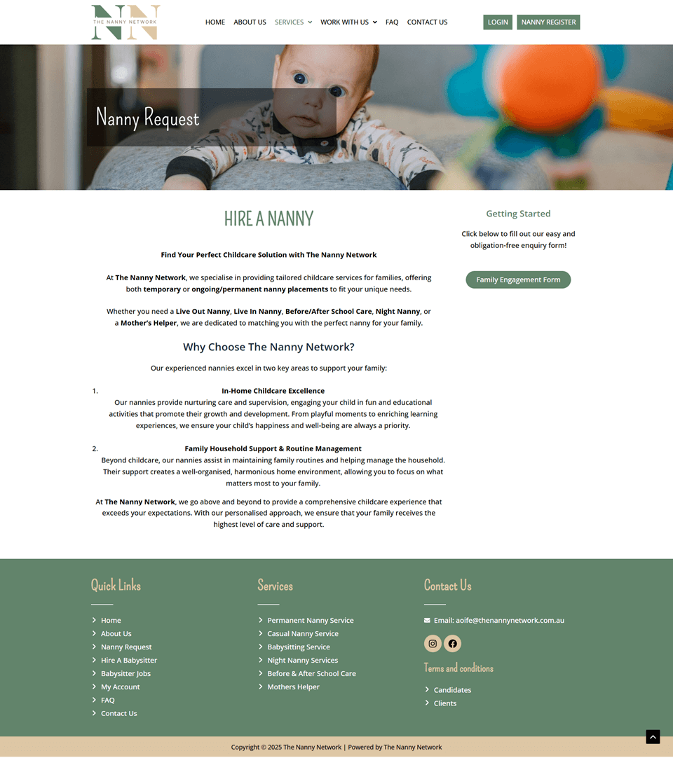 The Nanny Network is a modern, responsive, and SEO-friendly WordPress business portfolio built with Elementor. It’s fast, user-friendly, and designed to connect families with trusted childcare professionals.