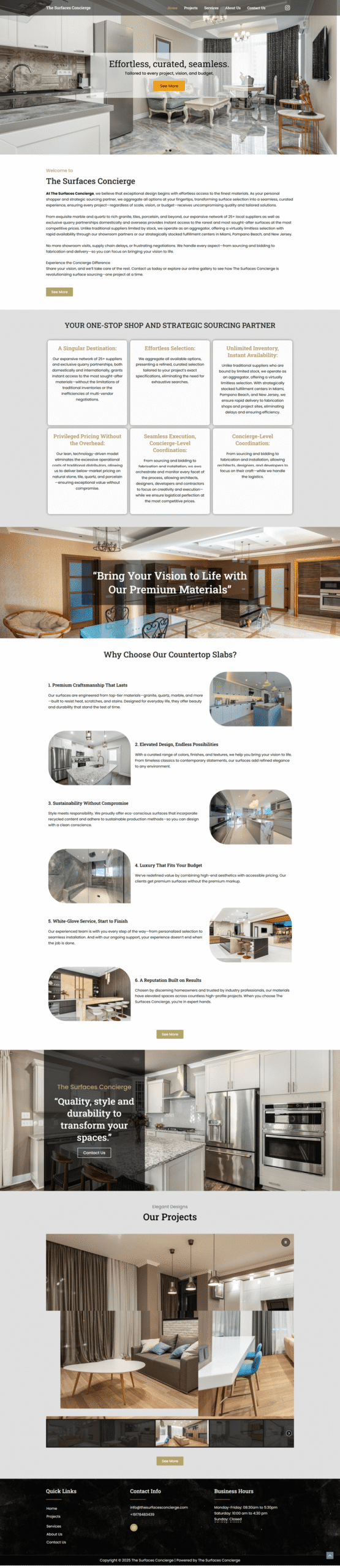 The Surfaces Concierge – A modern, responsive, and fast WordPress business portfolio built with Elementor. SEO-friendly design to professionally showcase your services, surfaces, and expertise.