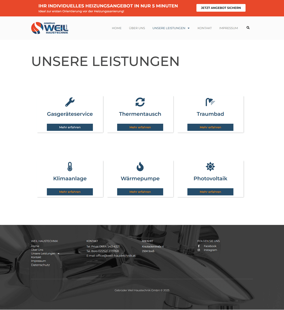Weil Haustechnik – A modern, responsive, and SEO-friendly WordPress business portfolio built with Elementor. Fast-loading design showcasing expert solutions in heating, plumbing, and home technology.